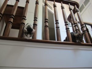 In hopes of making it to Santa’s “nice” list, Frank and Jessie try their hardest not to pounce on the Christmas tree below!