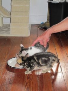 In the spirit of being kind and generous, Frank and Jessie politely share one large bowl of food. Our Ziti cats prove that sharing is caring!
