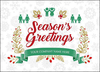 Featuring happy families in a festive design, the Childcare Snowflake Christmas Card is perfect for child care providers who want their clients to feel like family during the holiday season. Printed on smooth, glossy card stock that gives it a professional look and feel, the Childcare Snowflake Christmas Card measures 5" x 7" and is detailed with a green banner that serves as a designated space to add your company name. This card comes with many free upgrades, allowing you to include a personal message, choose your own ink colors and fonts, and order envelopes printed with your return address.