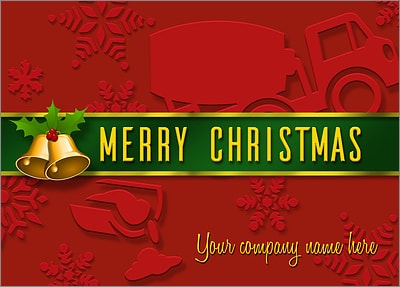 Wish your clients Merry Christmas and a build a stronger foundation for your concrete business with our Concrete Card Red. The Concrete Card Red features a festive look with snowflakes, Christmas bells, and gold trim. As with all of our holiday cards, this design is printed on 5" x 7" glossy card stock, and it can be customized with your company name and logo, a personal message or greeting, and a variety of different colors and fonts. Choose from a variety of solid or foil-lined envelopes and we can print them with your return address on the back.