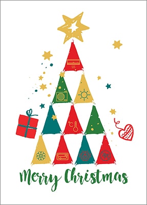 Heating and cooling elements add a personal touch to the HVAC Tree Christmas Card, making it perfect for HVAC professionals looking to connect with clients during the holiday season. Printed on glossy card stock, the HVAC Tree Christmas Card measures 5" x 7" and can be fully customized in order to create a one-of-a-kind design. This card features a colorful Christmas tree, a gift, a heart, gold stars, and a Merry Christmas message at the bottom, and it comes with many free upgrades. You can add your company name, include a personal message, and choose your own ink colors and fonts. We also offer a variety of solid and foil-lined envelopes that can be printed with your return address.