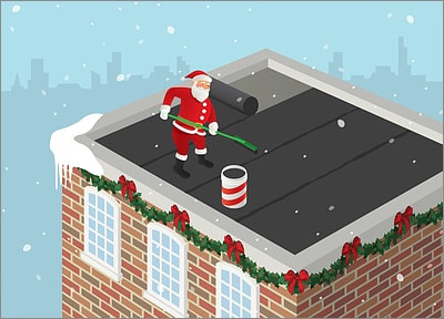 Roll out the holiday cheer with this Santa Roofer Christmas Card. 5x7" size on glossy cardstock, features Santa rolling out a rubber roof. Customize with message and logo for FREE! Ships with FREE envelopes!