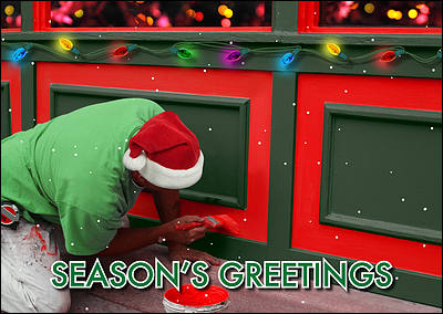 Featuring a house painter wearing a Santa hat while putting the finishing touches on a red and green wall, the Santa Painter Christmas Card reminds customers of the precision work you do all year long. Fully customizable with your company name, logo, and custom artwork, the Santa Painter Christmas Card offers a one-of-a-kind look that's sure to put you in the forefront of customers' minds this holiday season. Printed on glossy card stock, this 5" x 7" card comes with many free upgrades, allowing you to include a personal message, choose from a variety of ink colors and fonts, and enjoy free envelopes printed with your return address.