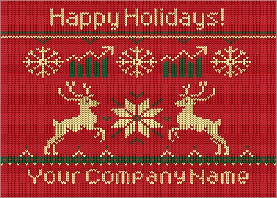 Grow your business and strengthen client relationships with the colorful, whimsical Corporate Reindeer Christmas Card. Featuring reindeer, snowflakes, and growth charts with a vintage-inspired holiday sweater motif, the Corporate Reindeer Christmas Card is perfect for any professional looking to connect with clients during the holiday season. Fully customizable with your company name, logo, and artwork, this card measures 5" x 7" and is printed on glossy card stock that gives it a smooth look and feel. It comes with many free upgrades, so you can choose your colors and fonts, include a personal message, and choose from a variety of envelopes that can be printed with your return address.