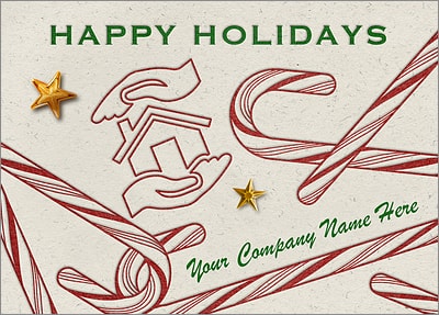 Thank your clients for their loyal business and encourage them to book your services in the new year with our festive Insurance Candy Canes Card for insurance agents and insurance providers. The Insurance Candy Canes Card is fully customizable, and it features a fun print with striped candy canes, gold stars, and a green happy holidays message at the top. You can personalize your cards by adding a unique message, adding your company name, and choosing your own colors and fonts. Measuring 5" x 7', this card is printed on glossy card stock that gives it a professional look and a smooth feel.
