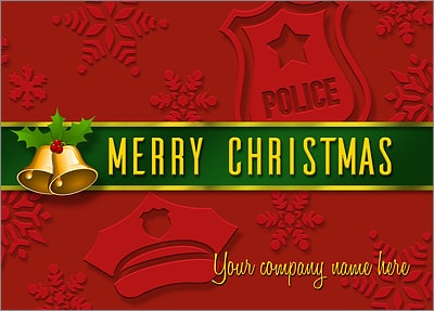 Connect with other first responders and members of the community during the holiday season with our Police Card Red for law enforcement officers. Printed on smooth, glossy card stock, the 5" x 7" Police Card Red includes a designated space on the front to print the name of your district or department, and it features unique details such as snowflakes, Christmas bells, an officer's hat, and a badge. It comes with many free upgrades that allow you to include a personal message, select your ink colors and fonts, and select your envelopes. If you prefer to see this card in person before placing an order, request a free sample now!