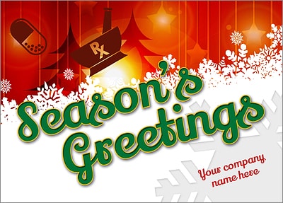 Let your patients and customers know that you're always there to serve them with our Pharmacy Snow Card for pharmacists. Snowflakes, trees, stars, a pill, and a mortar and pestle are printed on glossy card stock, making the 5" x 7" Pharmacy Snow Card the perfect way to connect to customers during the holiday season. This design can be fully customized with your company name and logo, a unique message, and your choice of colors and fonts. To make bulk mailings easier than ever, you can select from solid or foil-lined envelopes that we can print with your return address on the back.