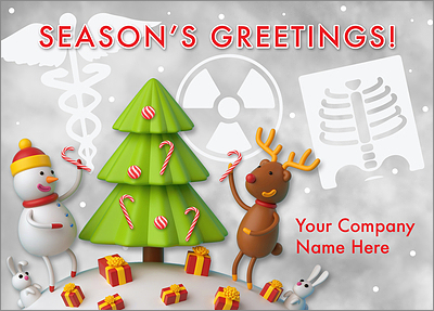 A festive winter scene with imaging graphics and X-rays lends one-of-a-kind style to our Radiology Cheerful Card. The perfect way to market your radiology practice or imaging center during the holiday season, this card is printed on 5" x 7" glossy card stock and comes with a variety of free upgrades and options for customization. You can select your favorite colors and fonts, add your company name, include a personal message on the inside, and choose from a variety of solid of foil-lined envelopes. We can even print your envelopes with your return address. Free samples and early order discounts are available!