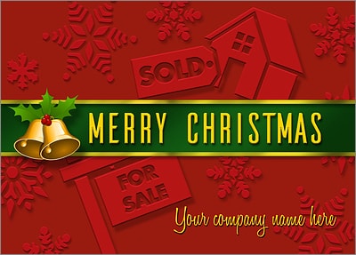 Perfect for real estate agents and commercial realtors, the Real Estate Card Red is the ideal way to connect with buyers and sellers during the holiday season. Measuring 5" x 7", the Real Estate Card Red is printed on smooth, glossy card stock and includes many upgrades that allow you to completely customize the look of your cards. The front is detailed with a Merry Christmas message and gold accents, and it includes a space to add your company name. Promote your business by customizing the front with your company name and logo and including a personal message on the inside. Request your free sample now!