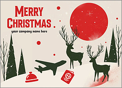 Perfect for travel agents, tour guides, airlines, and rental car services, Travel Christmas Cards make it easy to connect with customers and clients during the holiday season. Featuring industry-specific artwork and festive holiday-themed designs, Travel Christmas Cards from Ziti Cards are perfect for professionals who want to remind customers who to contact when it comes time to book their next trip. Printed on high-quality glossy card stock that gives each card a professional look, each design can be completely customized and personalized with a unique message, your company logo, and your choice of ink colors and fonts. Take advantage of our free upgrades, free envelopes, and low prices, or browse our selection to order free samples before you place your final order. Shop now to start customizing your holiday cards today!